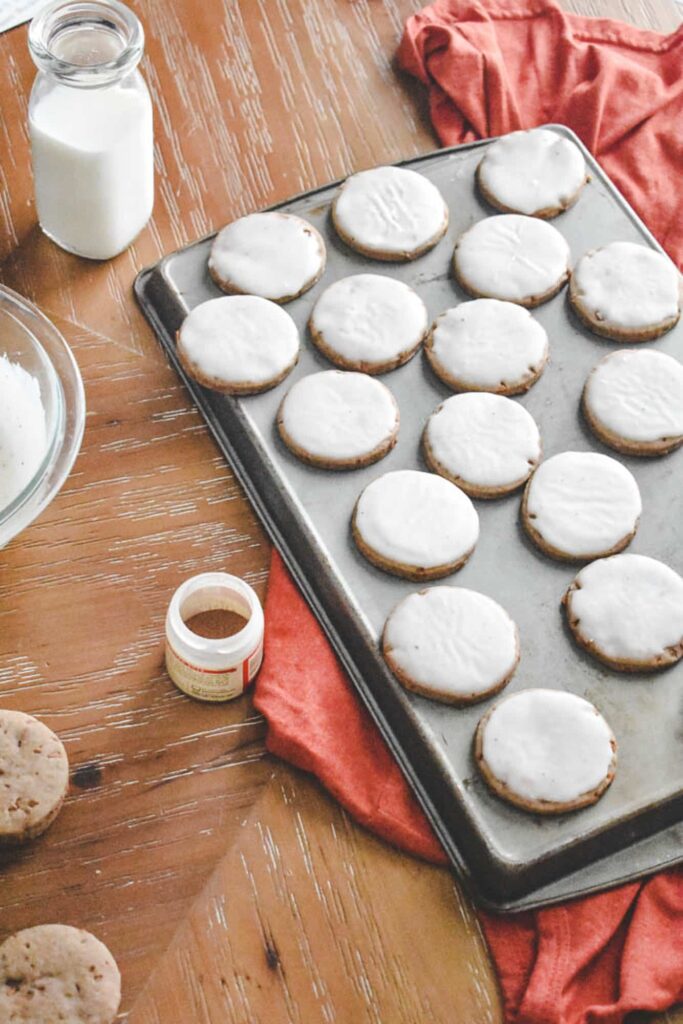 - Apply Glaze: Spread, drizzle, or dip the tops of the cooled cookies in the glaze. I prefer to dip the cookie in glaze and shake off the excess while holding the cookie upside down.